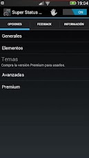 With Super Status Bar can change the position of the icons in the status bar, you can change your appearance, use the backgrounds that you like, download new themes each week, change the text fonts, simplify your status bar to a minimum expression or extend it until the unimaginable features, all to make your status bar to your liking and not liking the manufacturer.